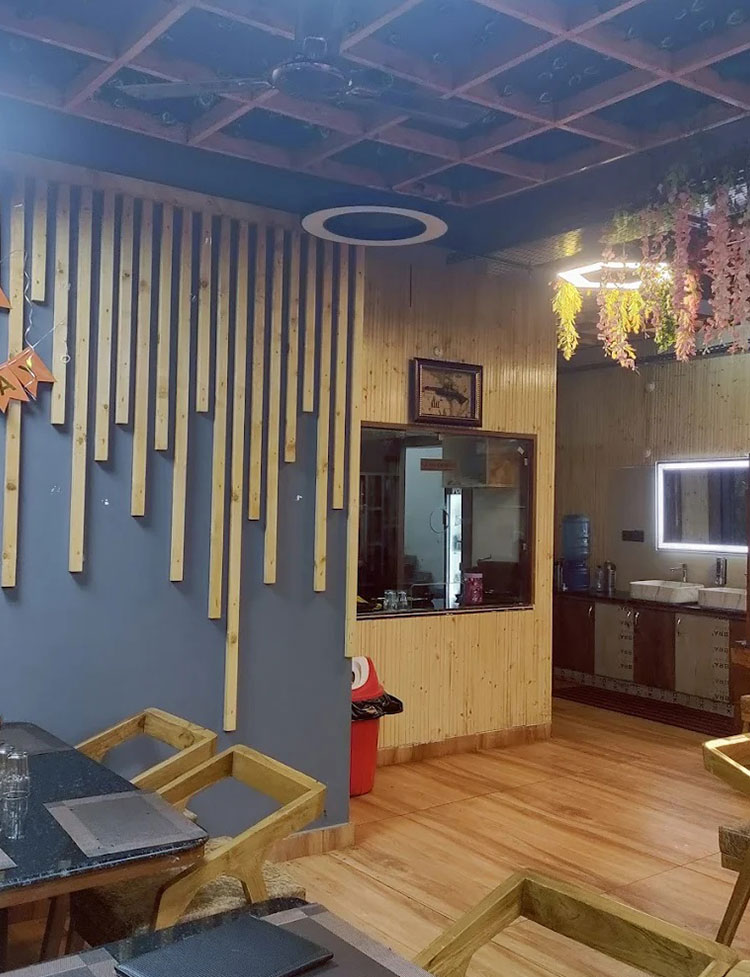 Our spacious restaurant comfortably seats 70–80 guests and is designed for your comfort with air-conditioned interiors and free Wi-Fi, making it the perfect spot for family meals, casual gatherings, or even remote work lunches.